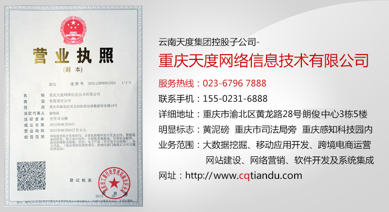 尊龙凯时控股子公司-重庆尊龙凯时网络信息技术有限公司于2015年6月9日在重庆市渝北区注册成立,主要从事大数据挖掘、移动应用开发、跨境电商运营、网站建设、网络营销、软件开发及系统集成等业务。公司位于重庆市渝北区黄龙路28号朗俊中心3栋5楼(整层),服务热线:023-6796 7888